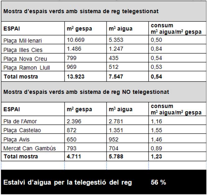 - Aconseguir un estalvi en el consum d'aigua dedicat al reg de les zones verdes de Sabadell, així com un important estalvi en el temps i carburants per la telegestió de tasques de tancament, obertura i programació del reg en les zones verdes.