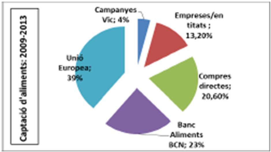 Les dades obtingudes de la Xarxa Alimentà ria Vic – Osona de 2009 fins a setembre de 2013 són: