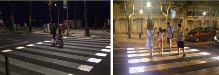 Per tal d'incrementar la visibilitat per als vehicles i millorar la seguretat tant de ciutadans com de conductors, quan el vianant s'apropa al pas, s'encenen uns senyals lumínics i dos senyals verticals. Els passos modificats s'ubiquen al passeig la Salle i al tram central del Passeig de les Palmeres. Aquests dos punts són passos amb una rellevant intensitat d'ús per part de vianants i en hores nocturnes disposen de poca il·luminació artificial. La millora ha consistit en situar plaques lumíniques de díodes de leds a cada extrem de les pastilles rectangulars blanques, les quals que s'il·luminen davant la presència d'usuaris. El sistema és un innovador avenç sobre la senyalització horitzontal actual, amb determinades senyals que s'executen amb l'aplicació manual de pintura reflectant, que es complementen amb el sofisticat sistema d'il·luminació integrada. Aquest sistema detecta de forma autònoma el moviment al seu voltant, encenent-se sobretot a la nit i en hores de poca visibilitat o amb condicions atmosfèriques adverses, i advertint els usuaris de vehicles de la presència de vianants.