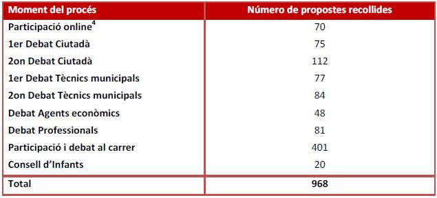 i) En total, el procés participatiu ha comptat amb una participació de 874 persones i ha permès recollir un total de 968 propostes.
