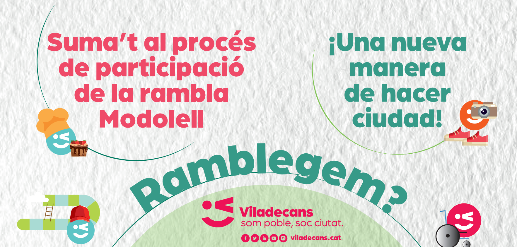 Des del departament de comunicació de l’Ajuntament es va desplegar un Pla de Comunicació amb l’estratègia d’informar i motivar conjuntament per tal d’arribar al major nombre i diversitat de persones habitants de Viladecans i especialment les persones residents i treballadores de la Rambla Modolell.
