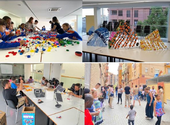 Com s'ha comentat, en coordinació amb el Pla Educatiu Entorn i durant la festa de la Primaverada (conjunt d'activitats de caràcter lúdic, educatiu, cultural i esportiu adreçades a la població infantil, juvenil, famílies i ciutadania que es desenvolupa a diferents emplaçaments del barri del Centre Històric), es van realitzar quatre tallers d'hàbits de reciclatge de residus i creació artística amb els nens i nenes de primària de les escoles Seu Vella, Pràctiques i l'Escola Príncep de Viana, i usuària de la Fundació Jericó. En aquests tallers, es proposaven 10 punts de recollida de taps en contenidors de cartó reciclat, es va fer una selecció de tots els taps recollits durant la jornada, una xerrada de conscienciació i l'elaboració d'una obra lumínica col·lectiva que simbolitza la il·luminació en un indret fosc del barri.