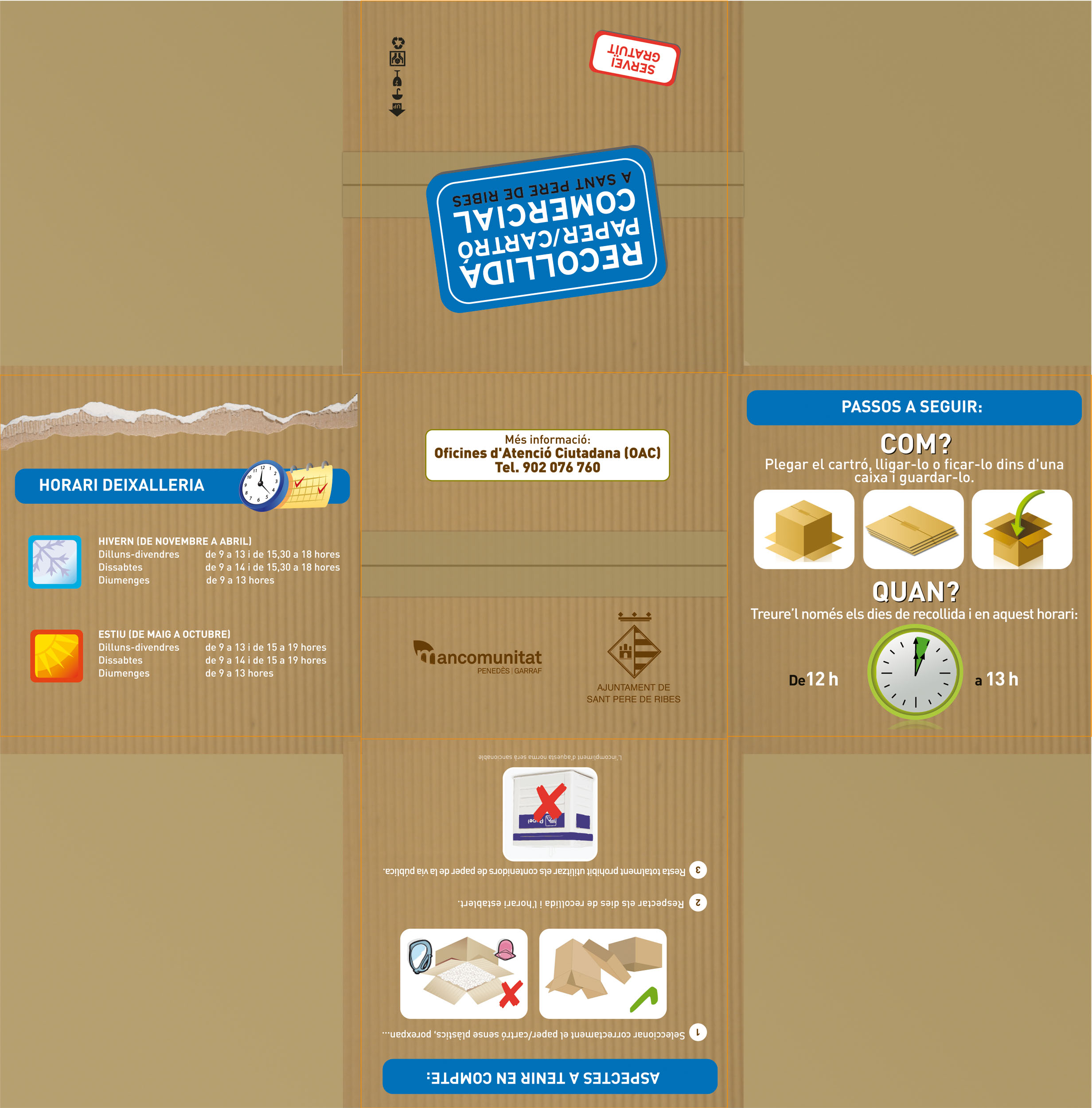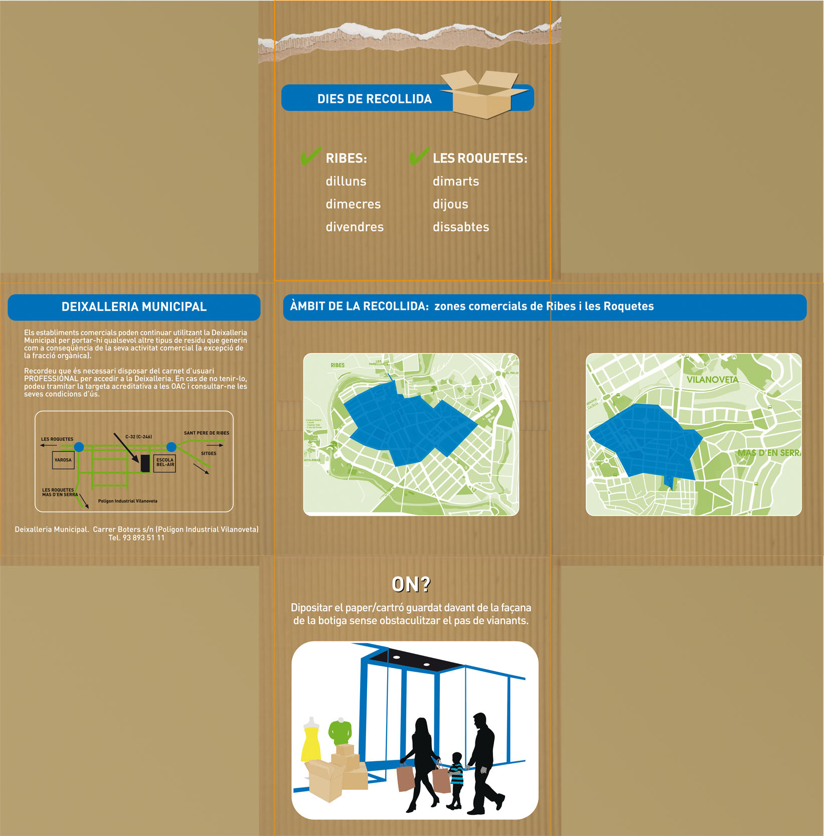 | Un equip d'educadors ambientals de la Mancomunitat Penedès Garraf van visitar comerç per comerç de Sant Pere de Ribes per fer una classificació segons el volum de generació de cartró. En aquestes visites es va explicar als/les comerciants les conseqüències sobre la via pública de l'acumulació del cartró als contenidors de carrer, es va sondejar la quantitat produïda, quina es portava a la deixalleria