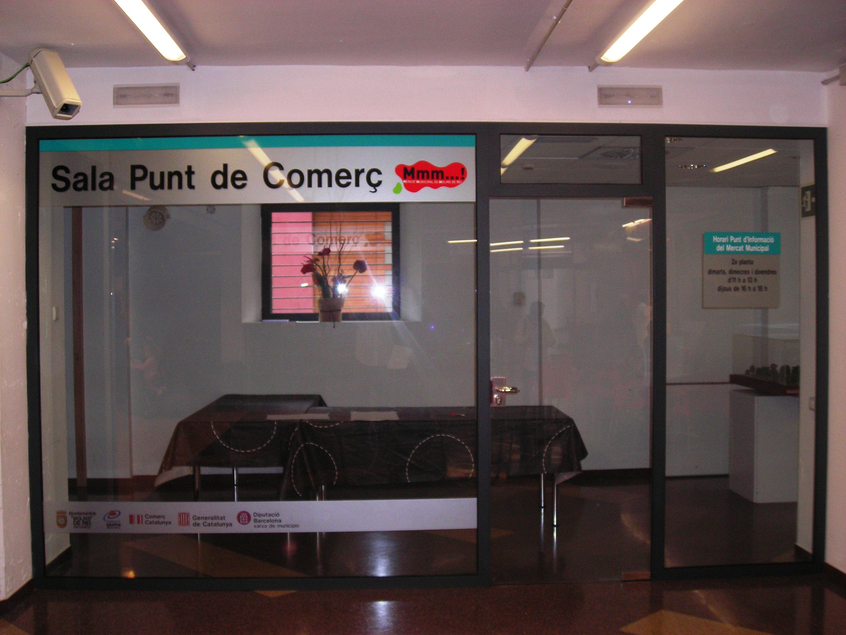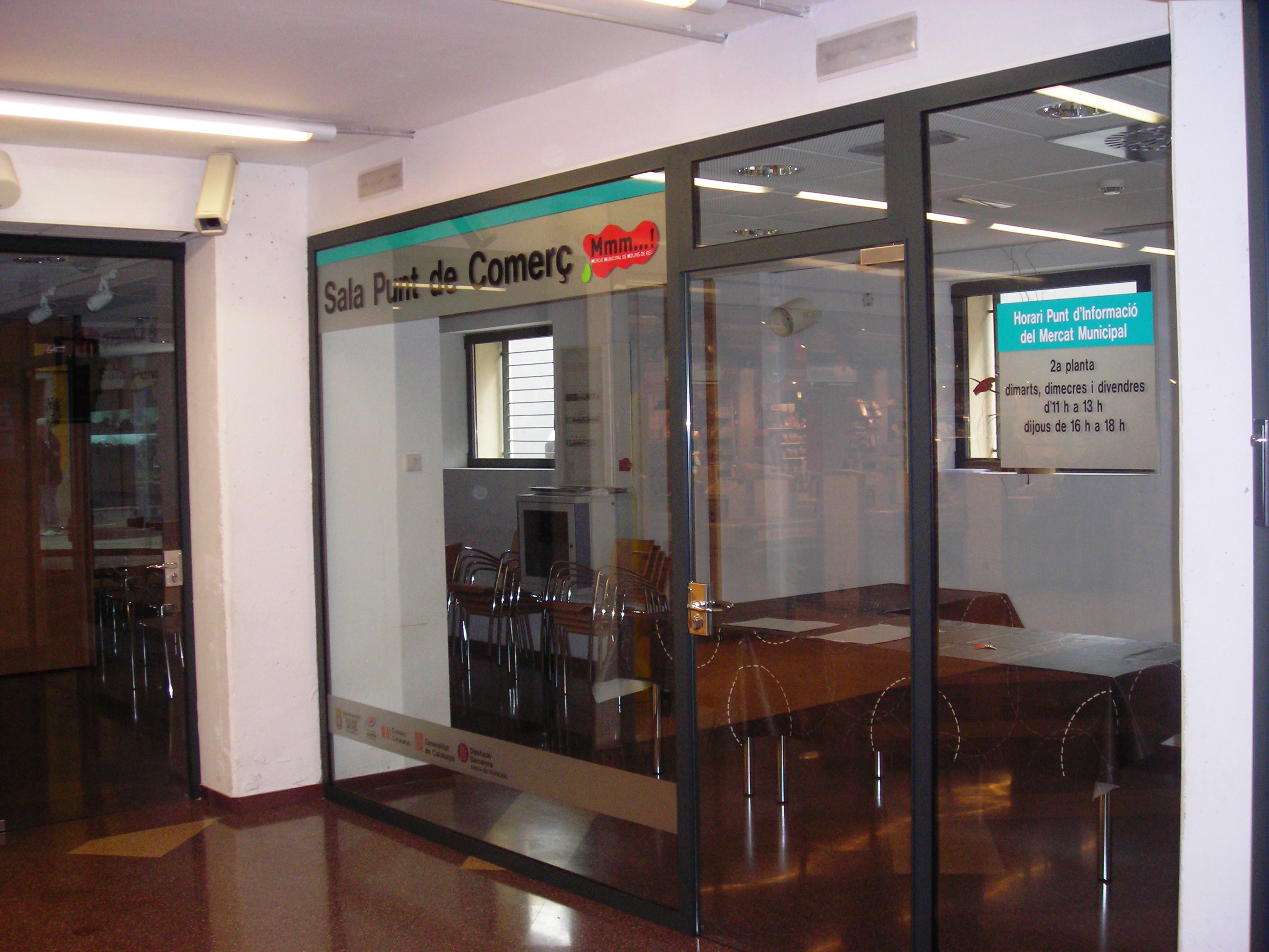 - Servei de reserva i/o lloguer de la sala Punt de Comerç. Es realitza la reserva i el lloguer de la sala Punt de Comerç del Mercat Municipal a entitats, empreses i comerços per desenvolupar activitats (formació, reunions..) vinculades amb comerç, empresa, turisme i gastronomia.